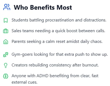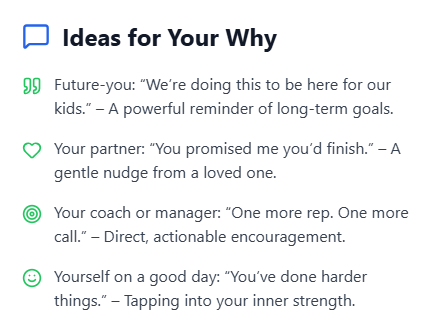 Stick it where excuses happen: desk, mirror, car, gym bag. Batteries included.